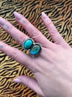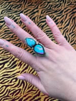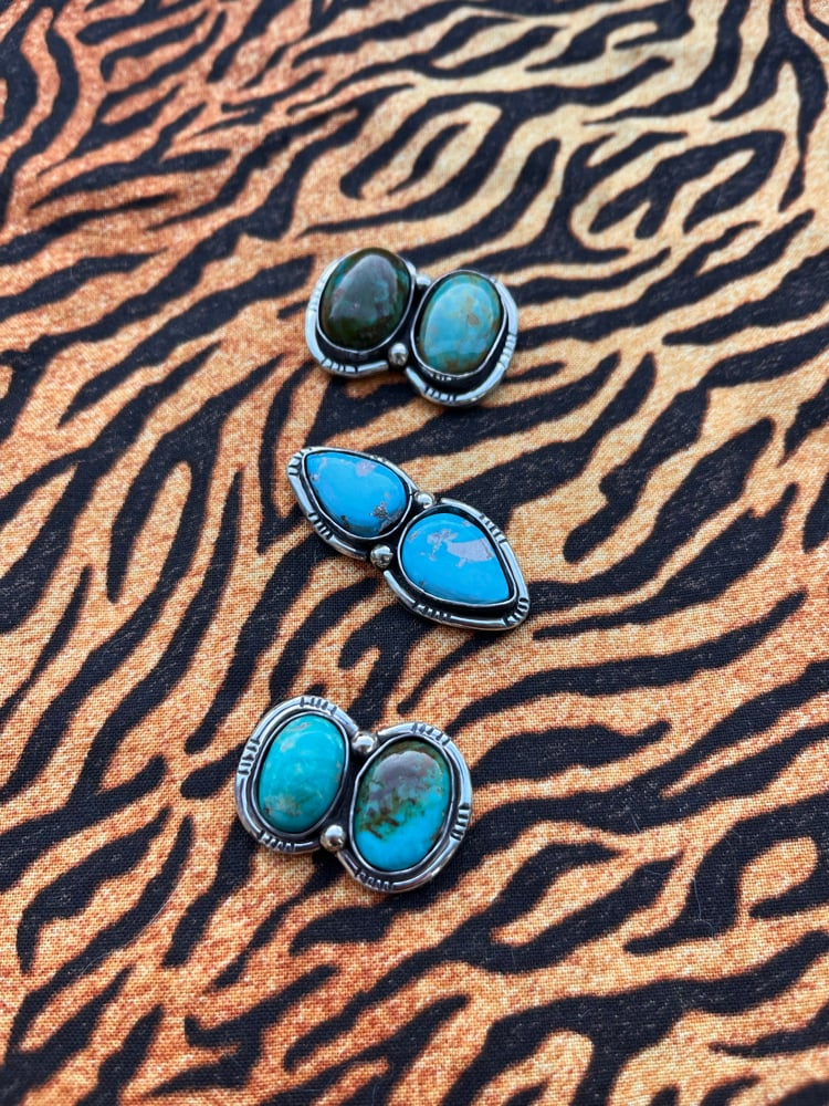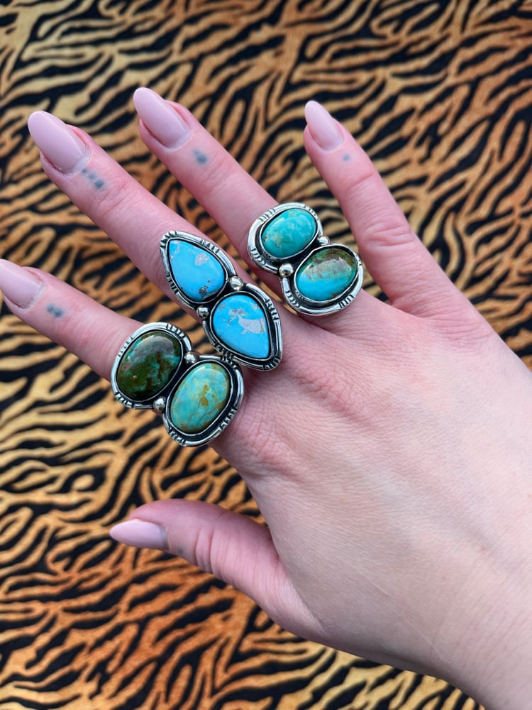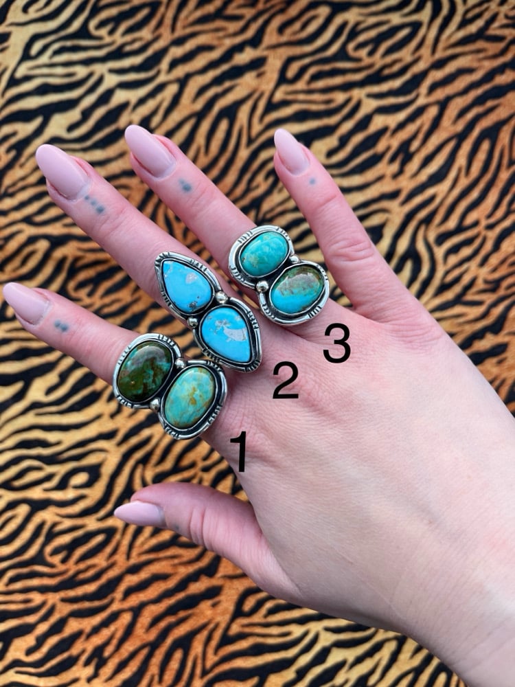 Sterling silver rings, each featuring two turquoise stones