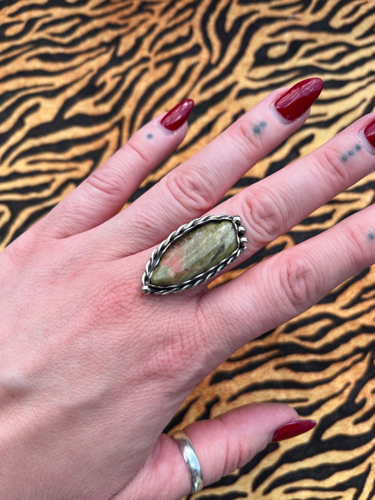 Sterling silver ring or pendant with green Unakite.