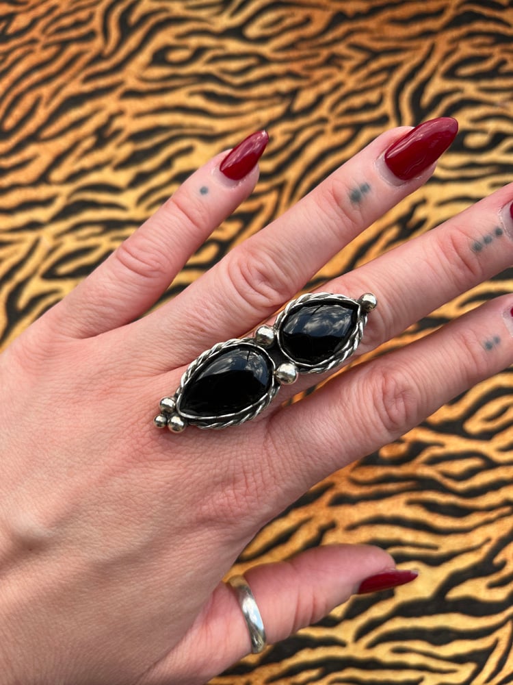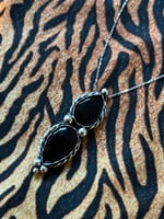 Ring oder Kette aus Sterlingsilber mit 2 schwarzen Onyx und Silberkugeln