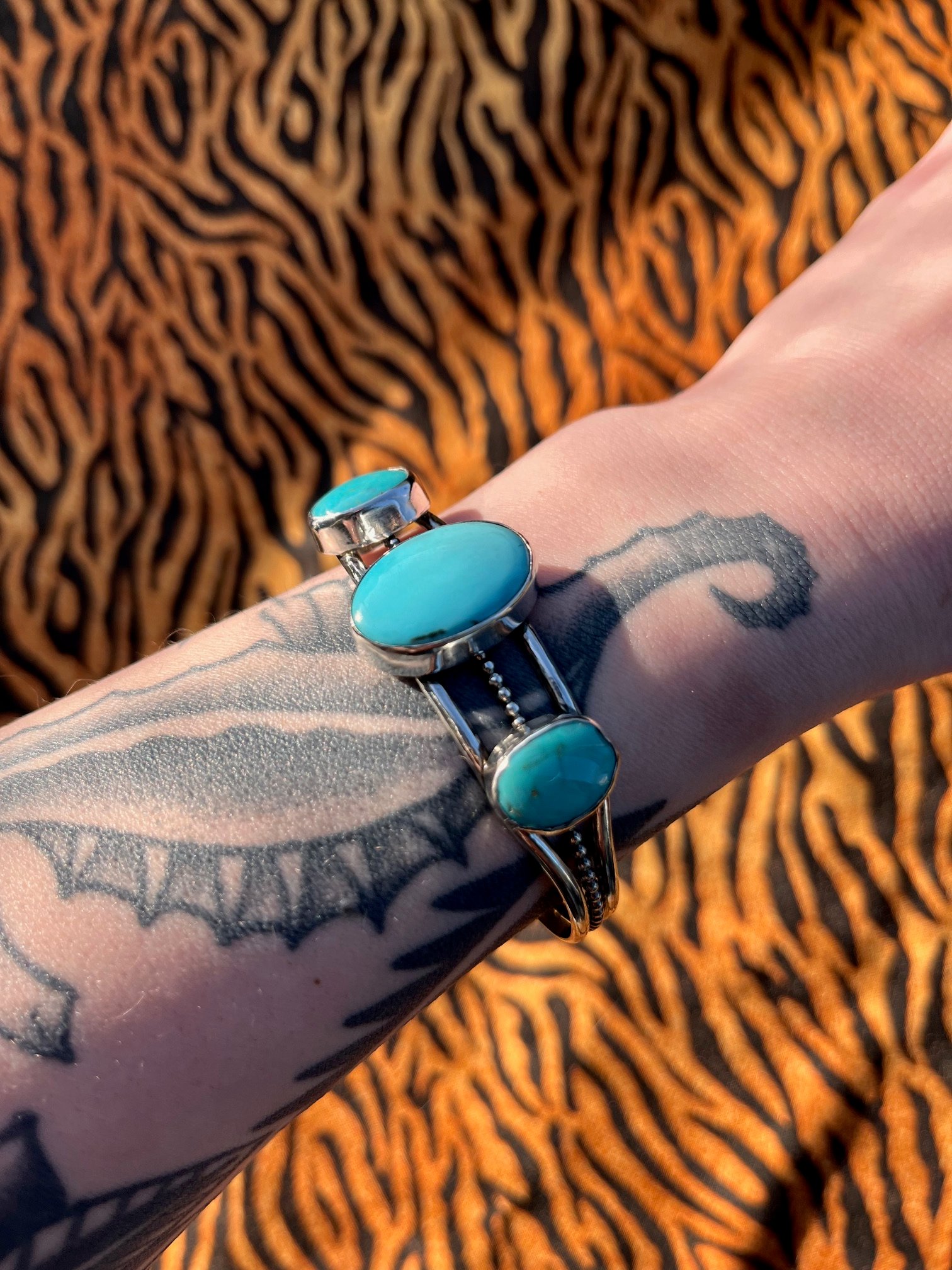 Sterlingsilber Armreif mit 3 Türkisen (Morenci + Sonoran Gem)