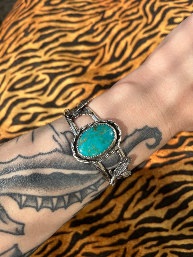Sterlingsilber Armreif mit Adlern und Royston Türkis.