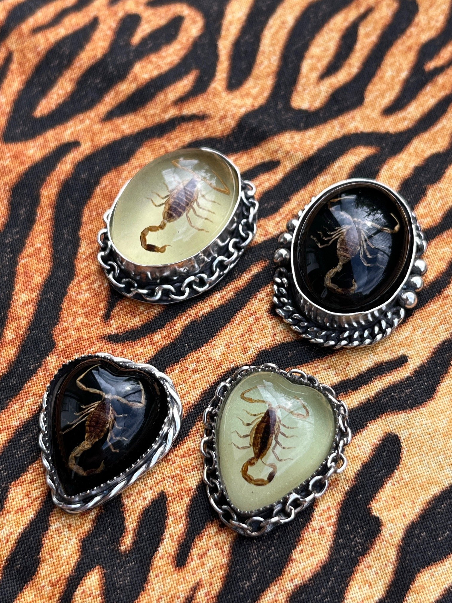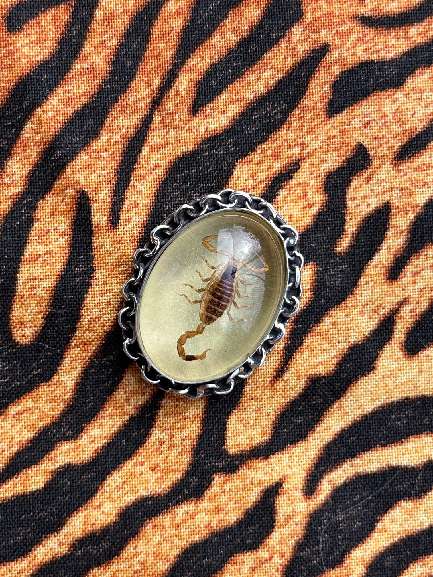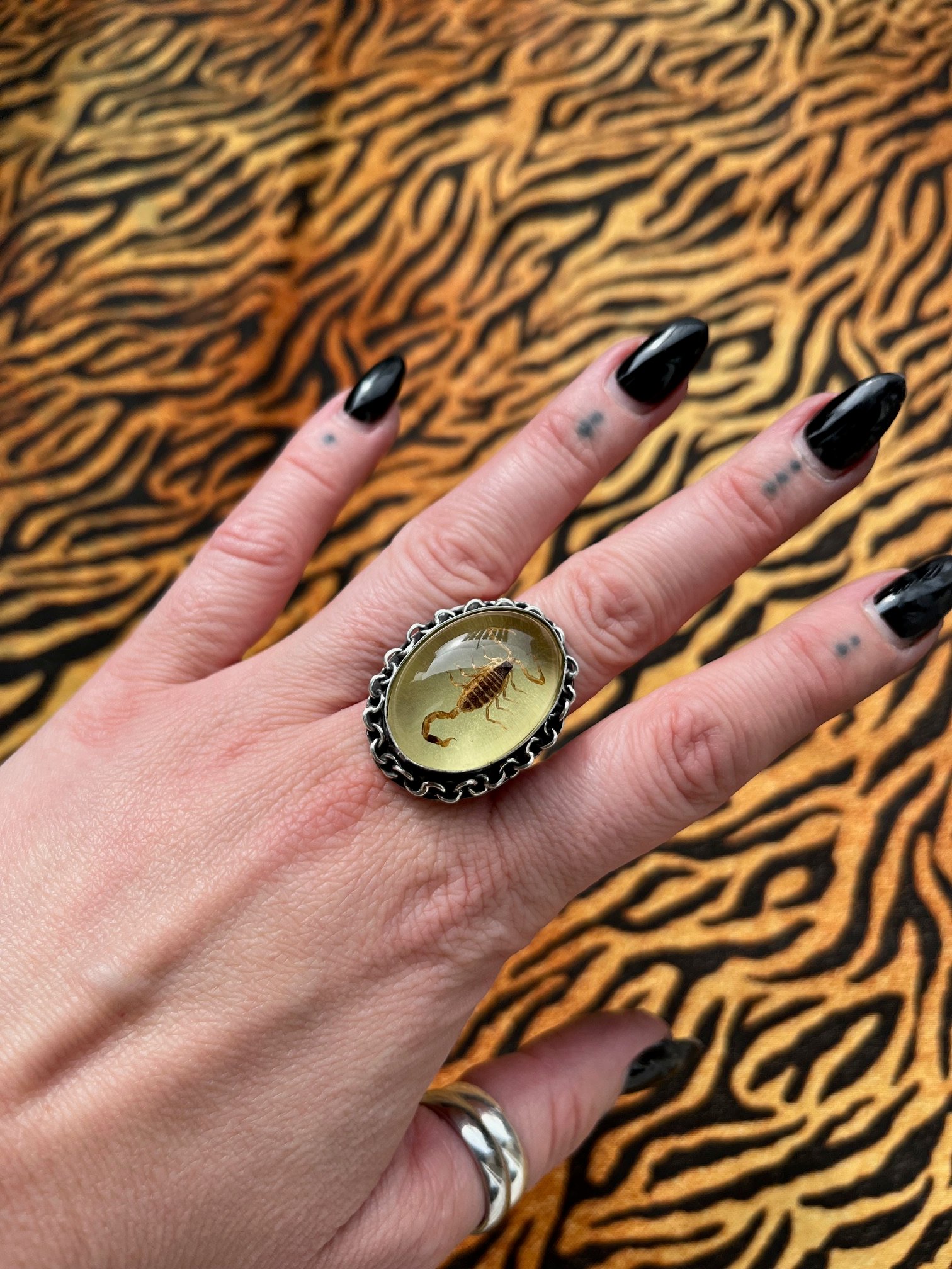 Ring aus Sterlingsilber mit hellem Skorpion Cabochon (Harz).